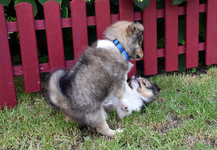 und nach anfänglicher Unsicherheit spielen die beiden schon ganz mutig miteinander.